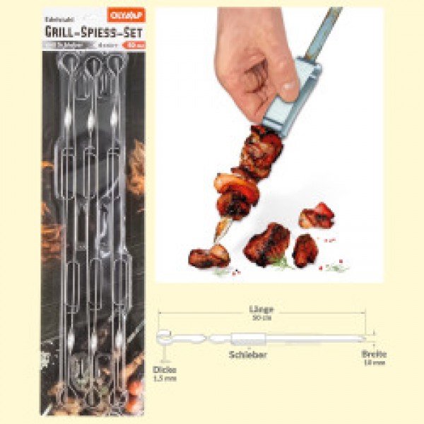 Набор шампуров для гриля со слайдером, 6 шт 50х1 см, нержавеющая сталь 1,5 мм