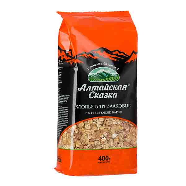 Состав: Хлопья овсяные, хлопья пшеничные, хлопья ржаные, хлопья ячменные, хлопья гречневые.