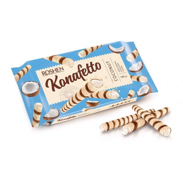 ТРУБОЧКИ ВАФЕЛЬНЫЕ С КОКОСОВОЙ НАЧИНКОЙ "KONAFETTO" ROSHEN, 140Г